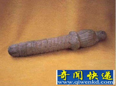 形似男性阴茎的还有一种叫广东人事,《竹林野史》描写得很详细:其长四五寸,先用热水浸泡,使其慢慢发硬,然后以绳束其根部,并以绳的两端绑在脚跟上,动其双脚,以手助其出入吐纳。
