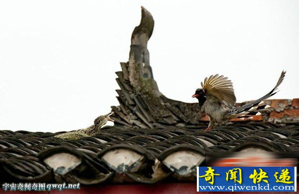 陕西一农家屋顶上演蛇与鸟的"生死大战"(组图)