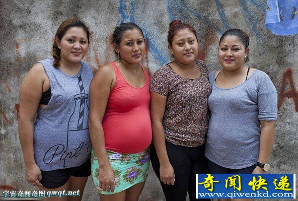 照片中的四姐妹,站在晾衣架下,由于怀有代孕的婴儿,她们的肚皮微微隆起。大姐Milagros最先在2013年接受了代孕这项工作,原因很简单,她需要钱来养活自己和家庭。从左到右依次为30岁的Milagros,30岁的Martha,22岁的Paulina,27岁的Maria。