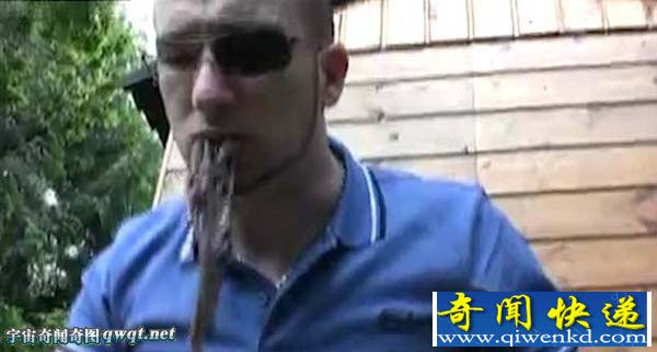据英国《每日邮报》5月3日报道,日前在法国拍摄的一则视频中,一名男子狼吞虎咽的吃掉1000只活蚯蚓,并喝啤酒将蚯蚓冲下。