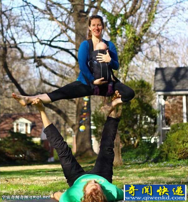 辣爸辣妈抱6周大宝宝做瑜伽 平衡绝技走红(组图)