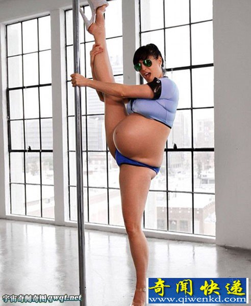 一职业钢管舞者怀孕期间仍穿高跟鞋练劈叉(组图)