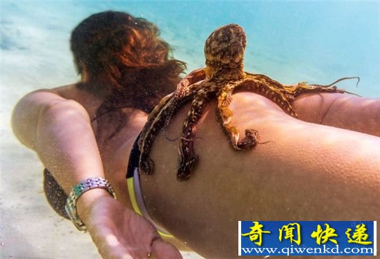 夏威夷火奴鲁鲁,一只好色的章鱼哥把它的”咸鱼手“放在了比基尼美女的屁屁上。