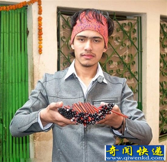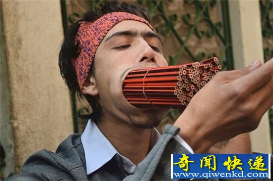 尼泊尔美男子嘴塞138支铅笔 再塞32根蜡烛结果