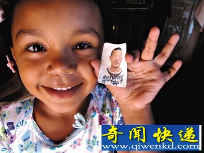 5岁的海地女孩萨沙·巴里奥斯拿着一张照片。母亲罗莎莱恩·杜佩瓦勒告诉她,这是她的父亲,一名来自乌拉圭的维和人员。