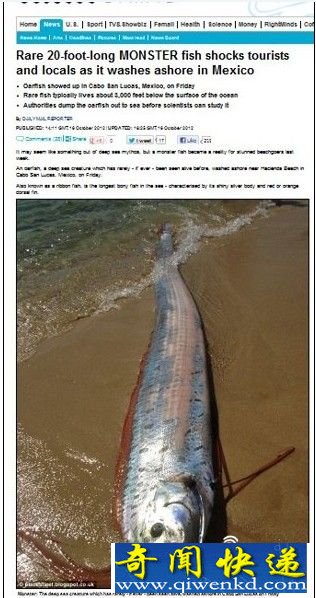 墨西哥发现“海怪” 马头鱼身甚是吓人